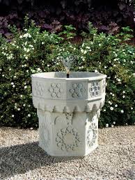 This free-standing fountain is based on arabesque design. The twelve-sided bowl incorporates Islamic hexagonal decoration, whilst the hexagonal base features a twelve-sided Islamic design. Available in a range of colours A very easy to install, low maintenance, quality cast stone fountain Detailed, robust and frost-proof fountain that will weather over time and last for many years Fountain supplied with pump and 10m cable (plug not supplied) An Andalos Jardinière is also available Please note: Take simple precautions to avoid frost damage to fountains. Drain water off before winter every year. Only replace in spring once any risk of hard frost has passed.