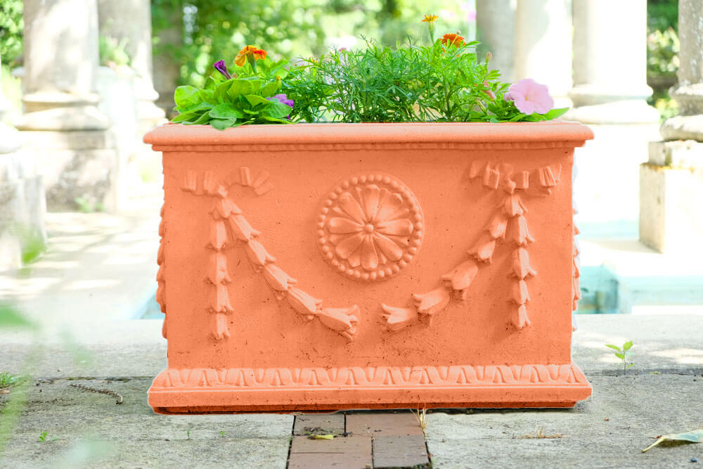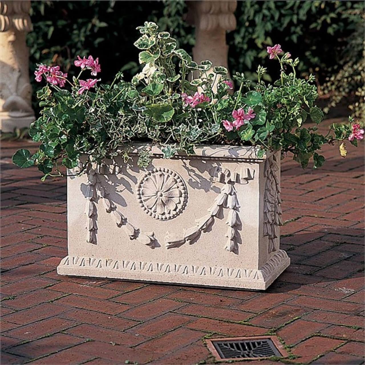 Klasický Truhlík Adam je vybaven festony a medailony a je ideálním květináčem pro terasy, malé zahrady a zdi. Stylový decor závěsů odráží populární styl architekta osmnáctého století Roberta Adama.