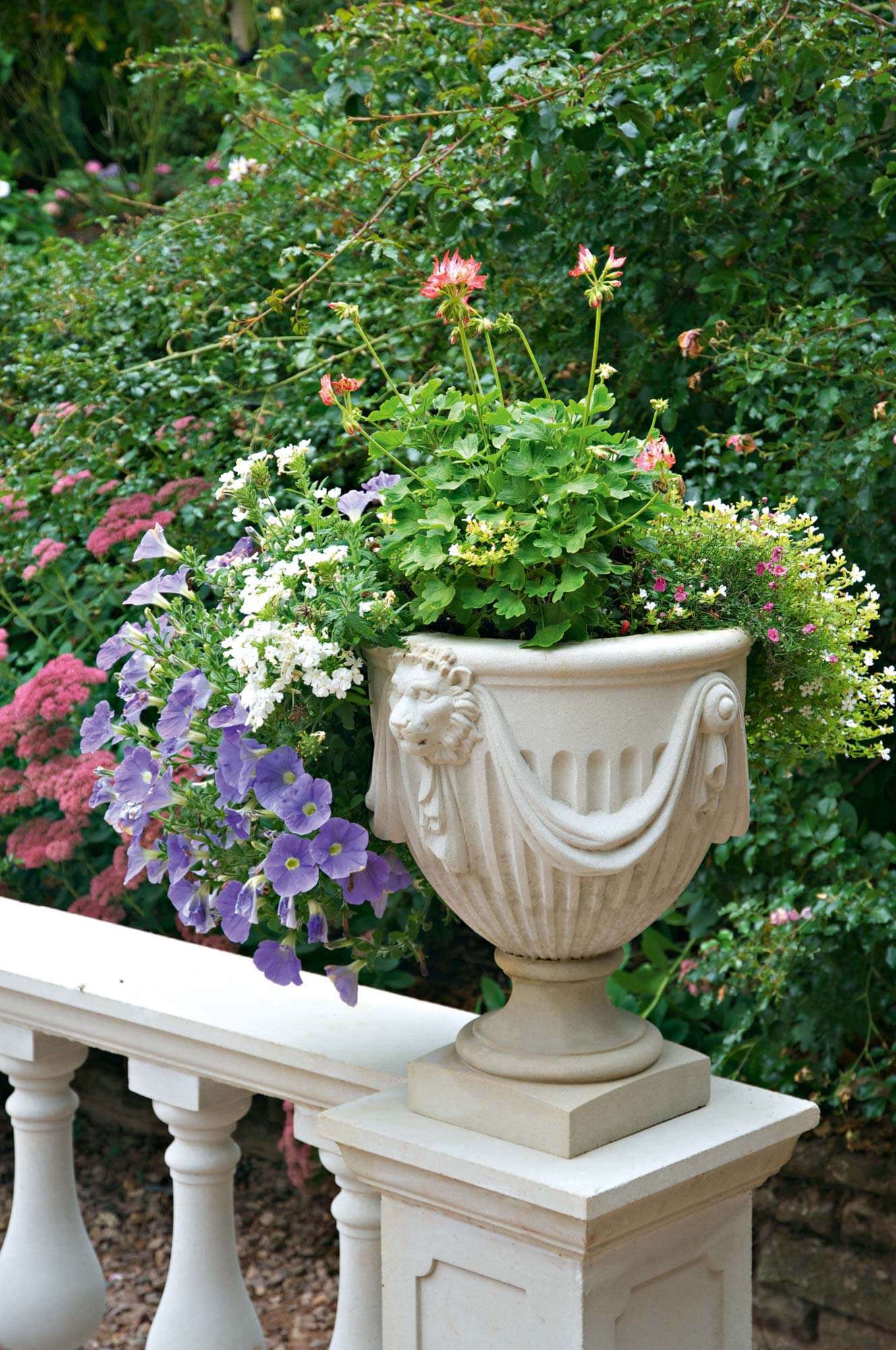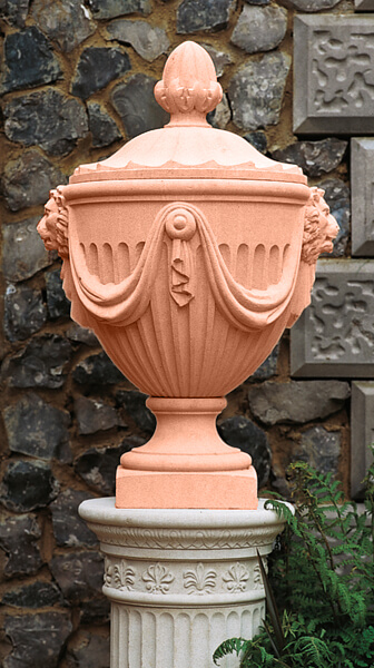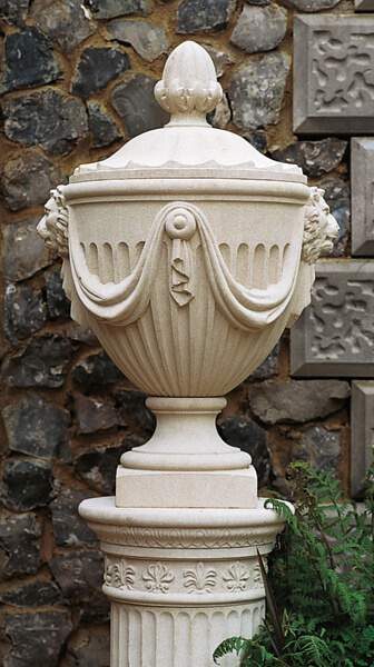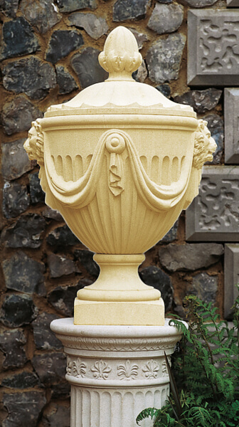 Tato působivá váza z litého kamene se vyznačuje závěsy drapérie. Podle okázalého stylu proslulého architekta Roberta Adama. K dispozici ve více barvách. Detailní, robustní a mrazuvzdorný. Vydrží řadu let.