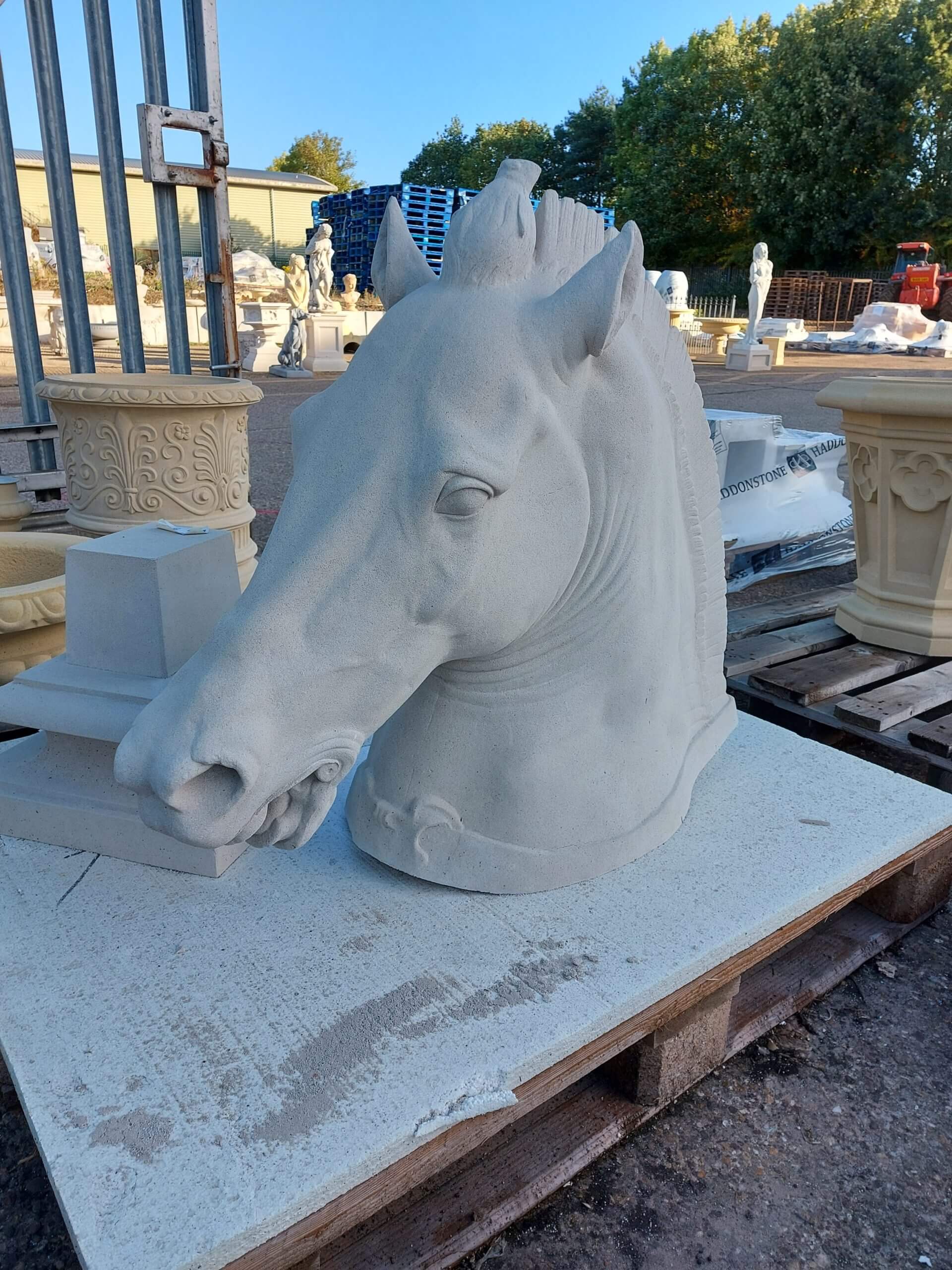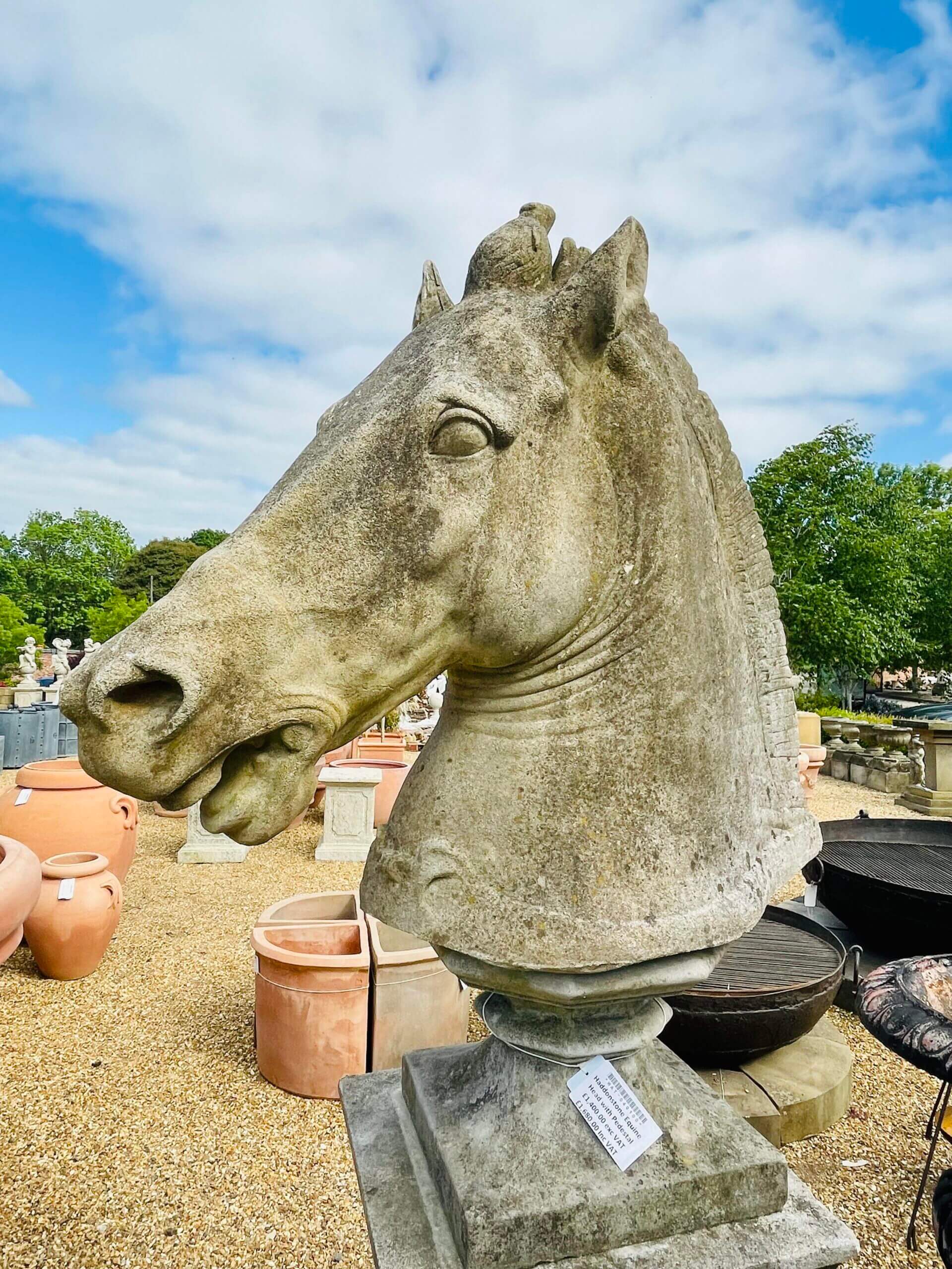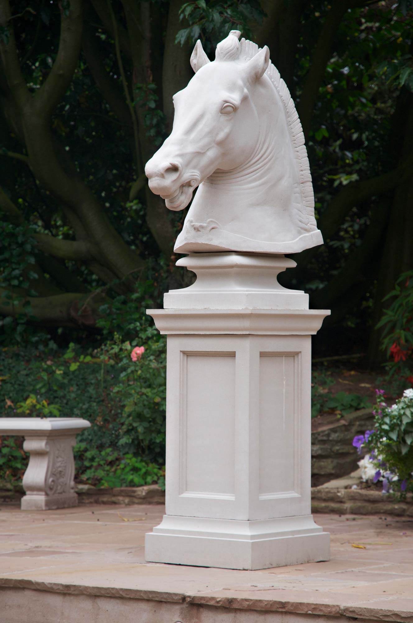 Tato busta koňské hlavy vypadá jako živá. Je to replika originální kamenné sochy, která byla objevena u Říma na počátku 16. století. Později byla použita jako chrlič u fontány v Medicejském paláci. Tato podobizna koňské hlavy je silně ukotvena v historii.