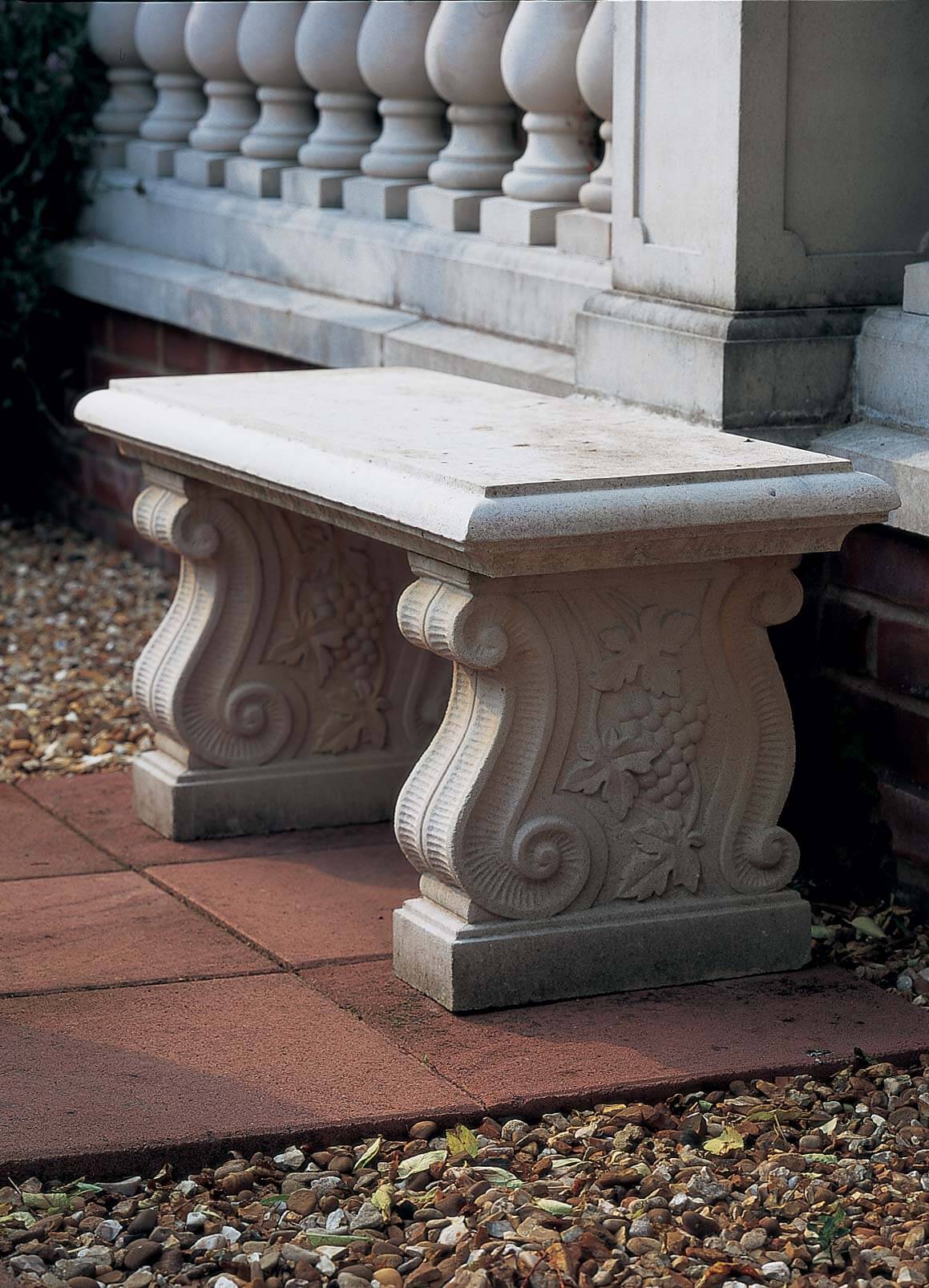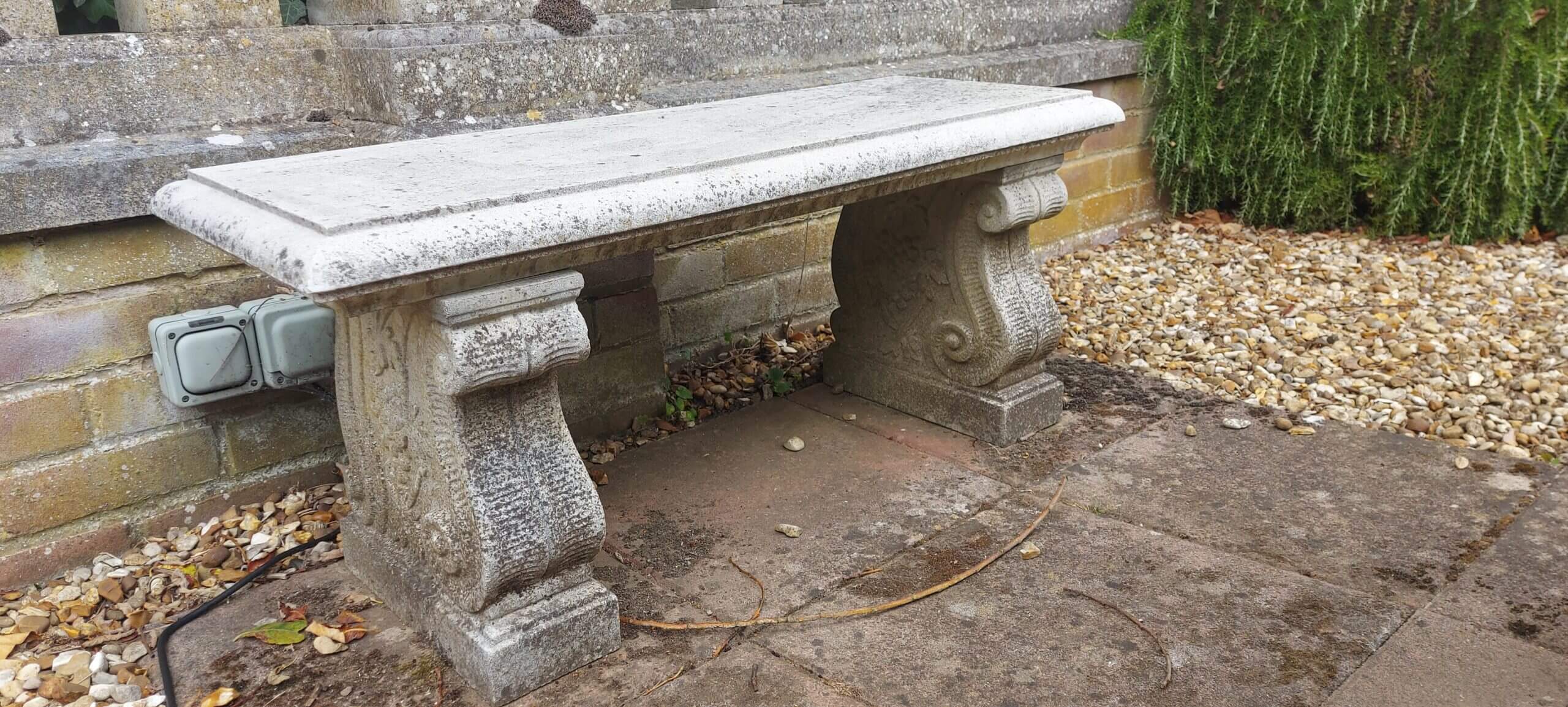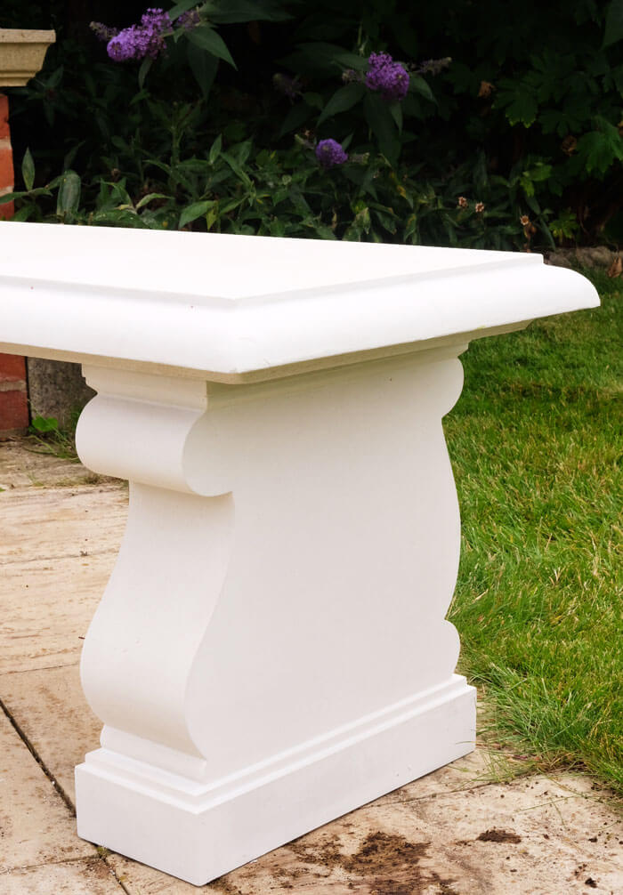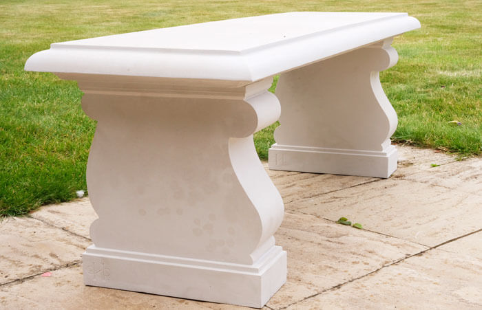 Tato jednoduchá, ale stylová lavice z umělého kamene je tvořena dvěma volutovými podstavci. Její instalace je velice snadná.