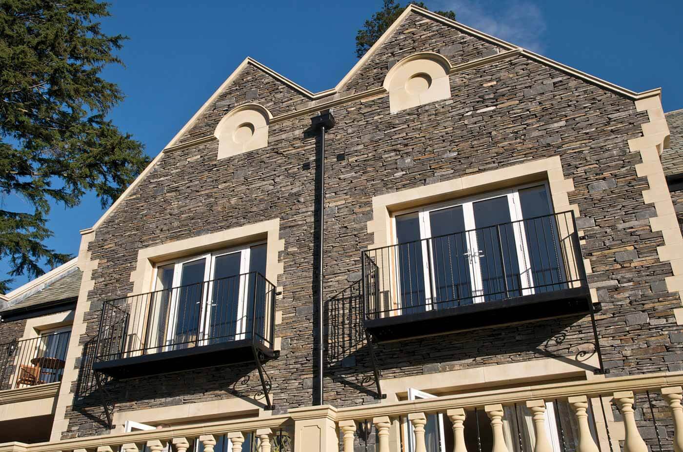 Naše nárožní bosáže v materiálu TecLite mohou být připevněny k rohu budovy a díky tomu jsou vhodné na renovaci nebo k modernizaci. TecLite má oproti tradičnímu kameni konstrukčně tenkou stěnu, díky níž snižuje hmotnost součástí až o dvě třetiny.