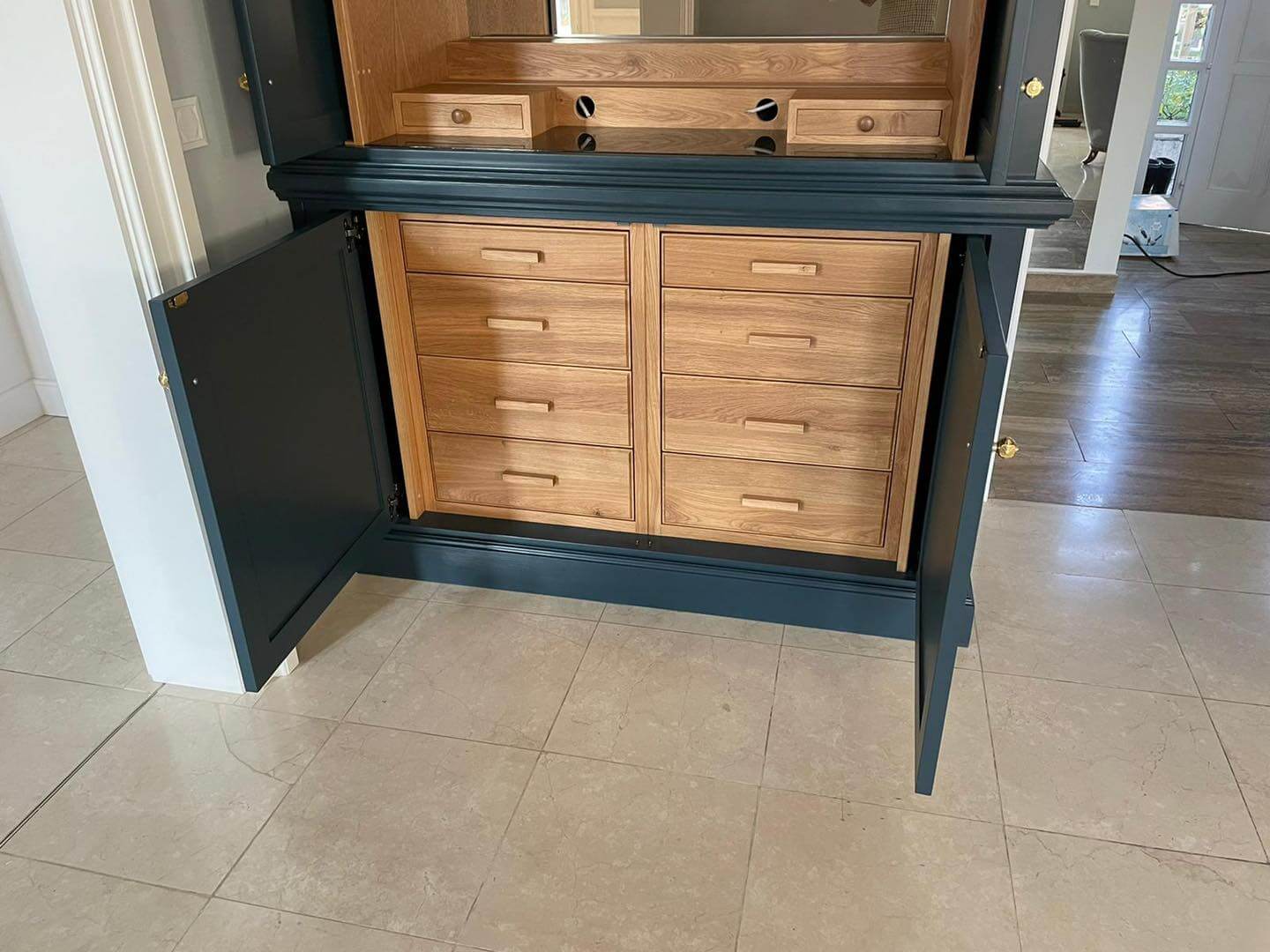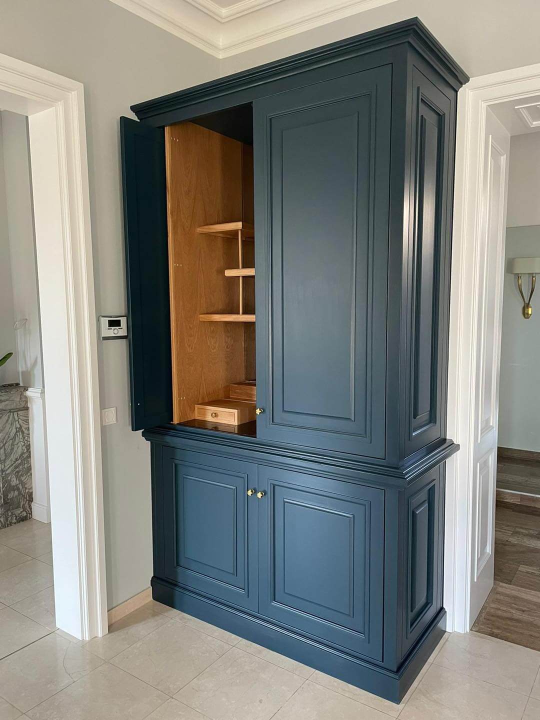 Zelenomodrá vestavná skříň na míru