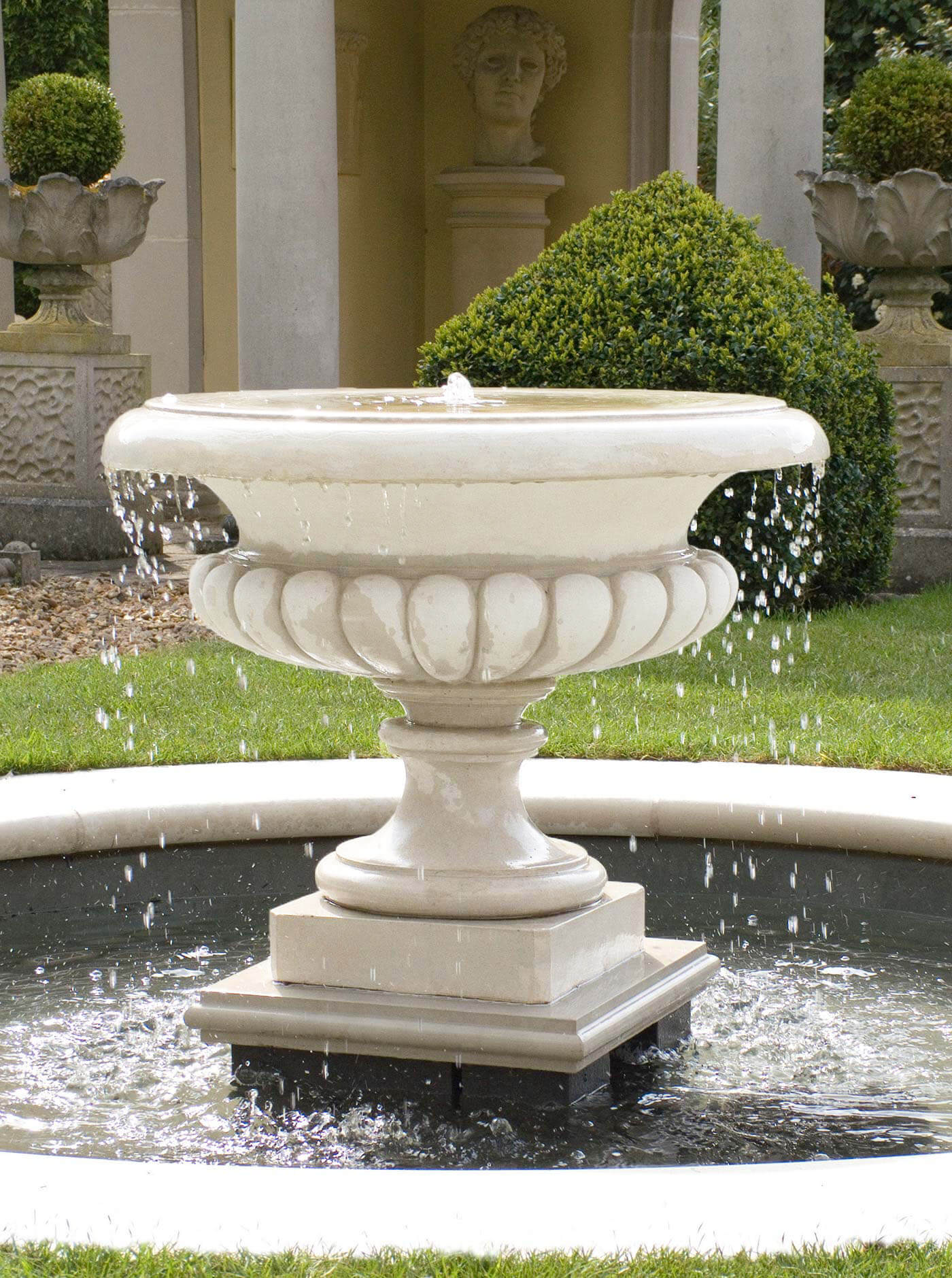 Tato fontána byla vytvořena jako replika pro West Lodge Park Hotel v Hertfordshire. Tato elegantní samostatně stojící zahradní fontána má širokou mělkou mísu s volutovým dekorem. Nejlépe vynikne umístěním do Malého jezírka nebo Jezírka Torus. Dostupná v různém barevném provedení. Klasické, robustní a mrazuvzdorné provedení, které odolá času a vydrží po mnoho let. Doporučujeme zakoupit čerpadlo X210, které není zahrnuto v ceně.