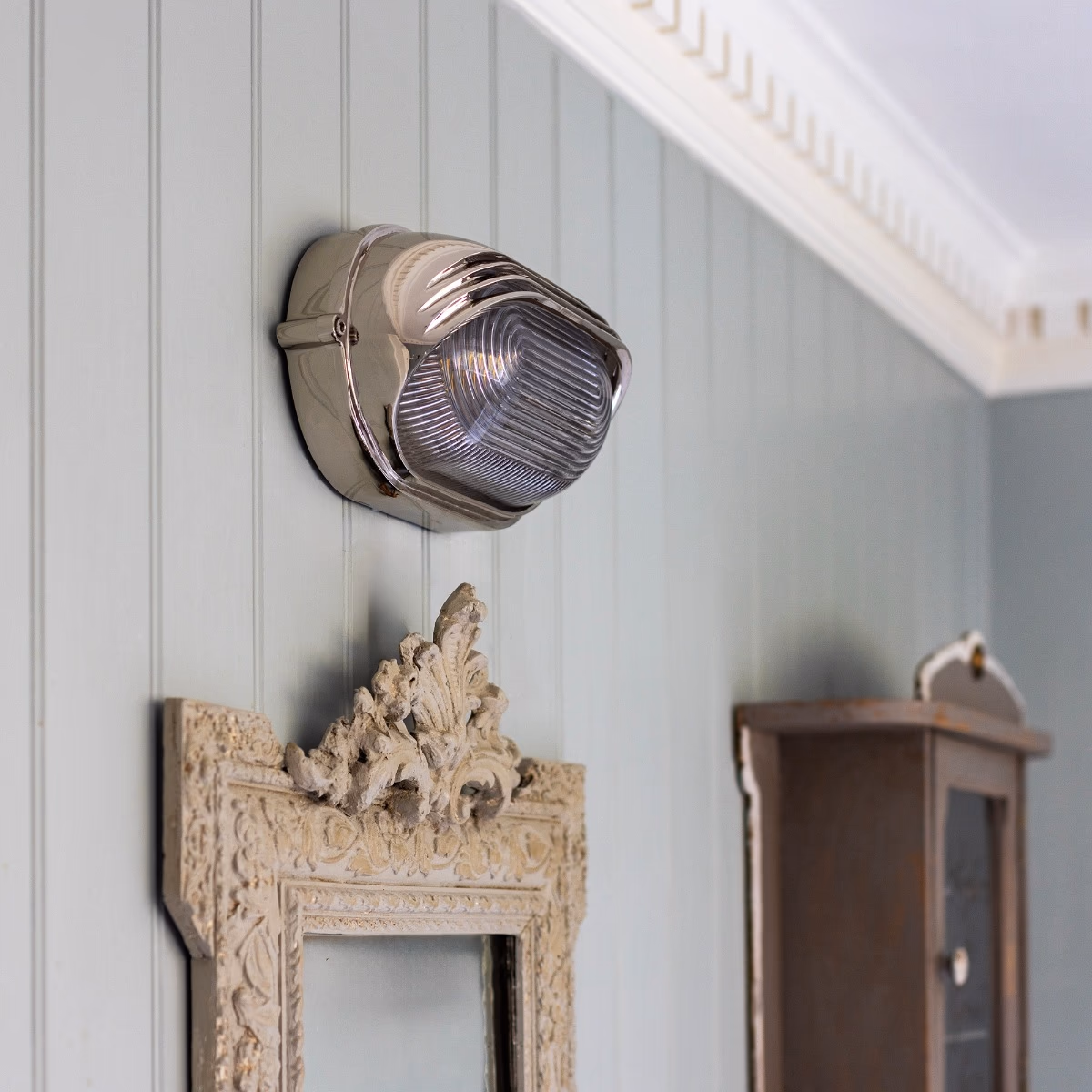 Nástěnné svítidlo Marlborough Eyelid Bulkhead je ručně vyrobeno z masivní mosazi a představuje sofistikovaně přepracovanou verzi původního námořního svítidla. Vyniká tlustým prizmatickým sklem a vysokým krytím IP65, díky čemuž je ideální jak do koupelny, tak do venkovního prostředí.