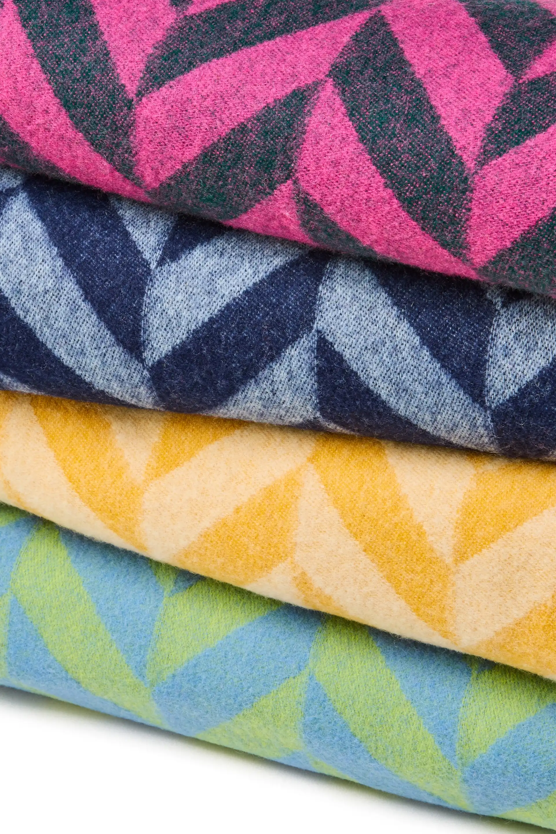Deka z jehněčí vlny - Chunky Herringbone/Emerald & Pink