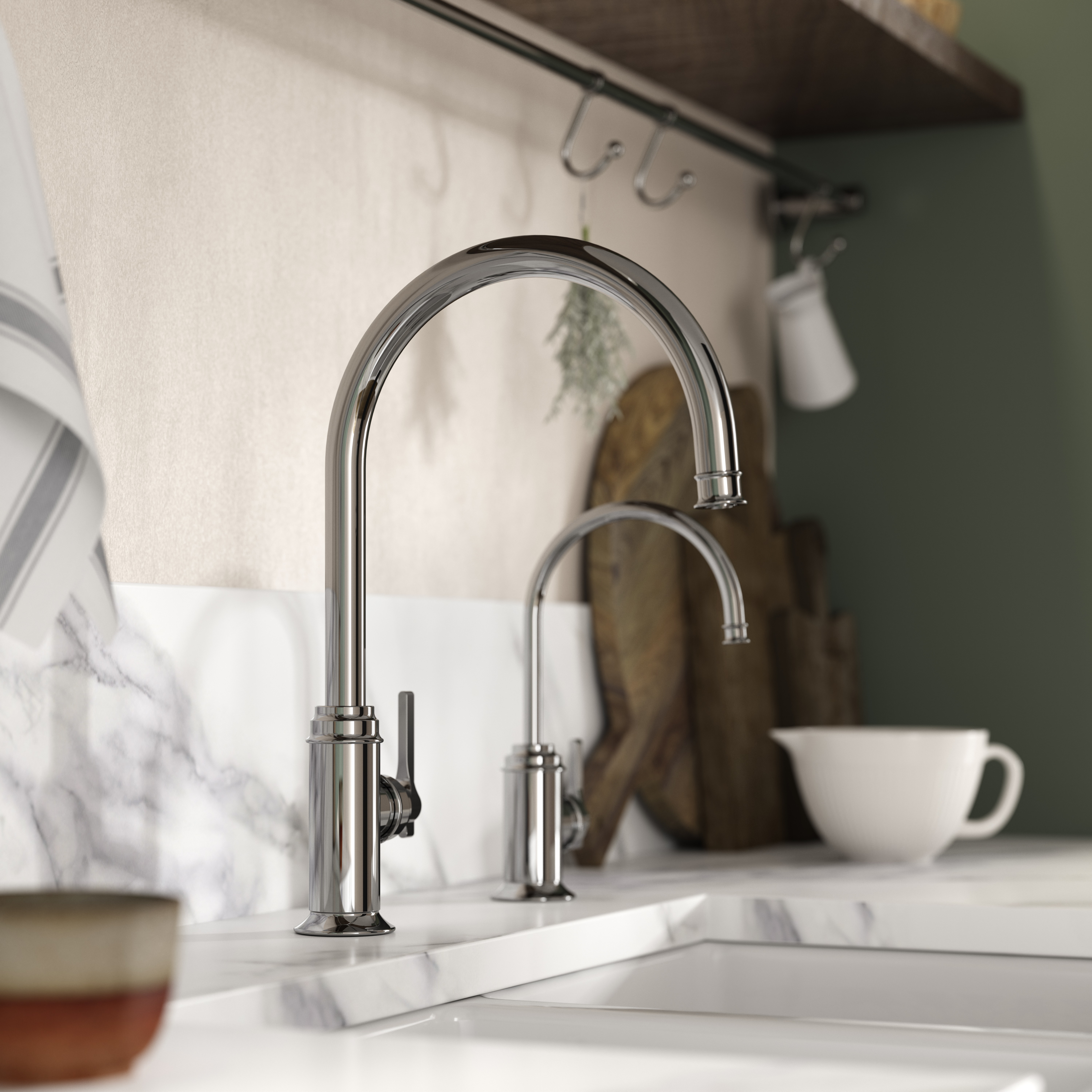 Tento mini kohoutek, který je mladším bratrem kohoutku Southbank Monobloc nebo Bridge Mixer, sdílí jejich charakteristické prvky a poskytuje jak okamžitou horkou vodu, tak filtrovanou studenou vodu. Jemným zatlačením páčky dozadu bezpečně načerpáte horkou vodu na čaj, kávu nebo vaření, nebo posunutím páčky dopředu získáte filtrovanou pitnou vodu. Namontujte jej vedle hlavního kohoutku nebo na ostrovní dřez, abyste zcela oddělili vodu na mytí a pitnou vodu.
