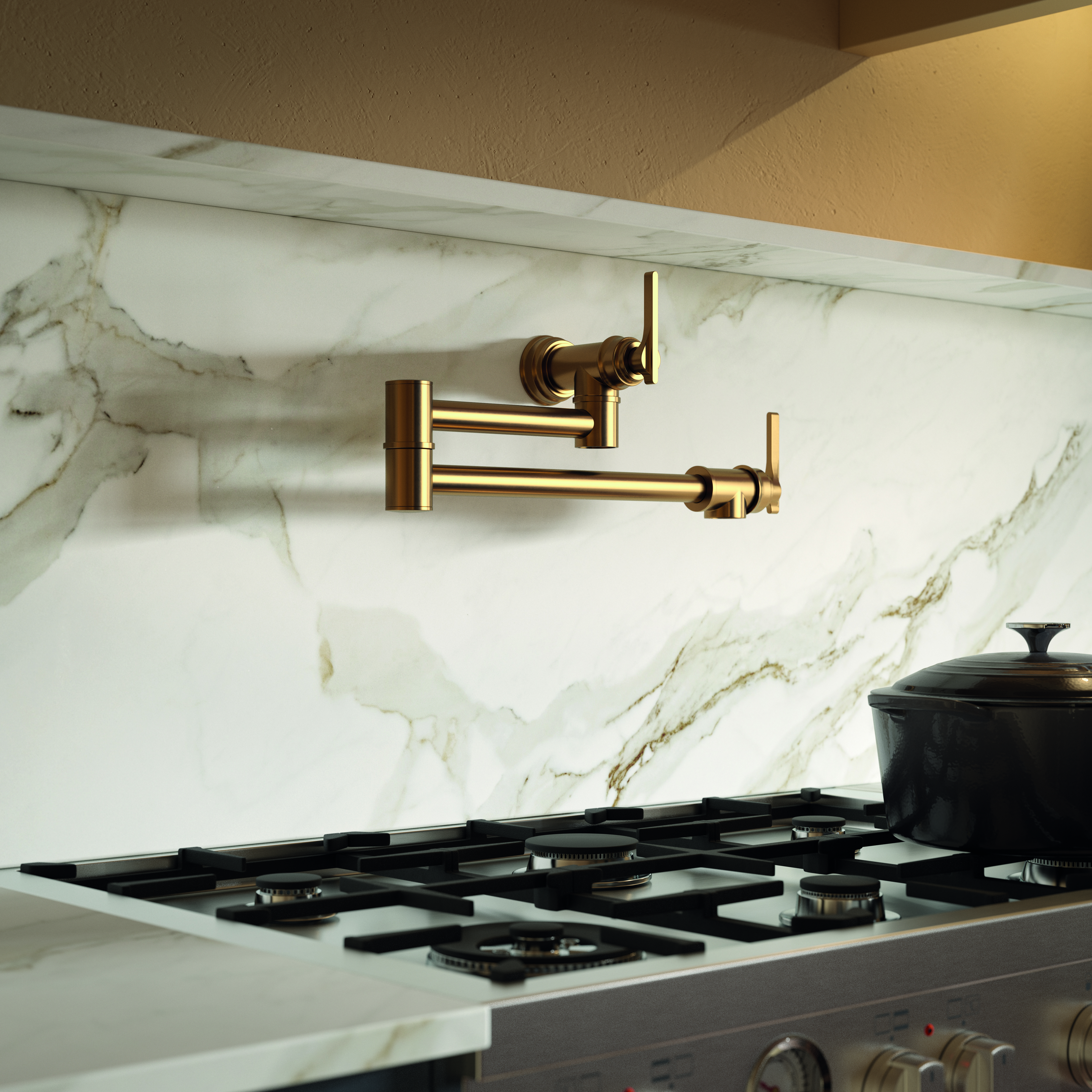 Oživení popularity plniče hrnců odráží renesanci designu poloviny století. Pohodlí – dokonce luxus – mít nad sporákem dlouhou baterii se rychle stává nepostradatelným pro každého domácího kuchaře. Konec s přenášením těžkých hrnců s vodou od dřezu k varné desce. Charakteristický styl kolekce je patrný v páce, spojích a upevnění, díky čemuž je plnič hrnců dokonalým doplňkem.