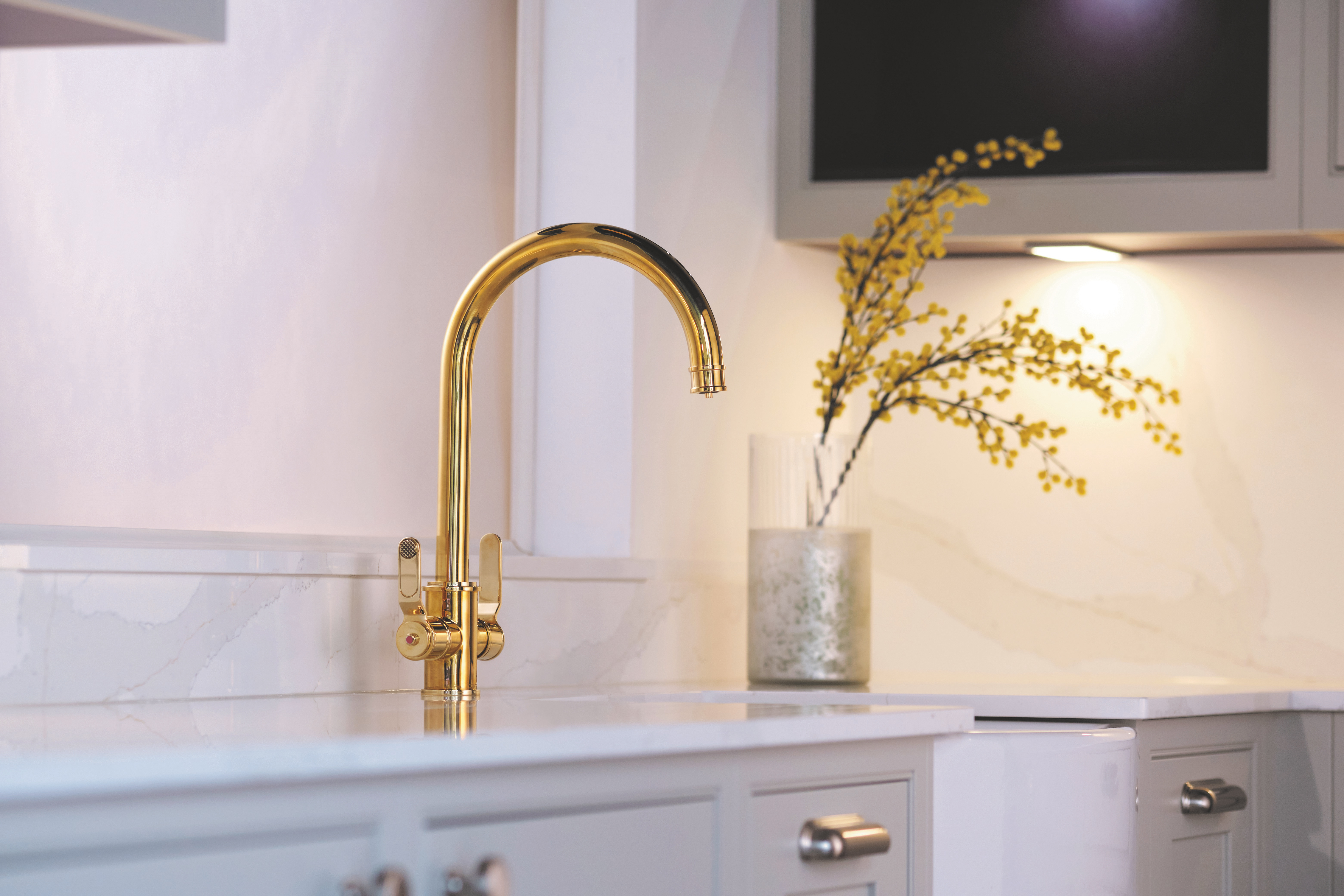 Armstrong 3-v-1 okamžitý kohoutek na horkou vodu dodává téměř vroucí vodu a standardní teplou a studenou vodu přímo z jednoho směšovače. Svým průmyslovým stylem je nadčasovým a působivým doplňkem každé kuchyně nebo technické místnosti.