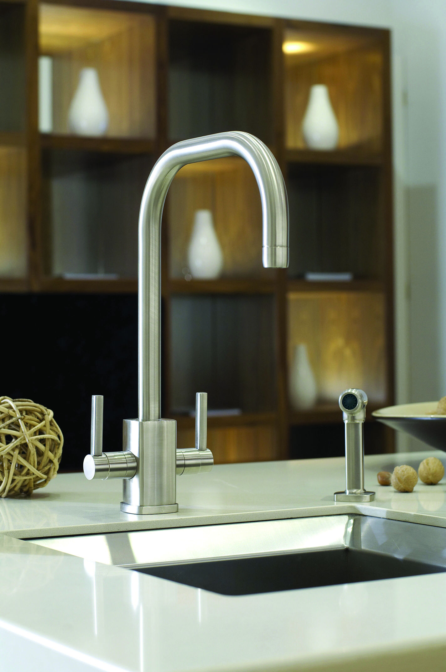 Krásné hranaté tělo, páčky a podstavec dodávají této baterii Juliet Square skutečně moderní vzhled. Tato verze je také vybavena praktickou boční sprškou, která usnadňuje vaření, čištění a plnění velkých hrnců a pánví.