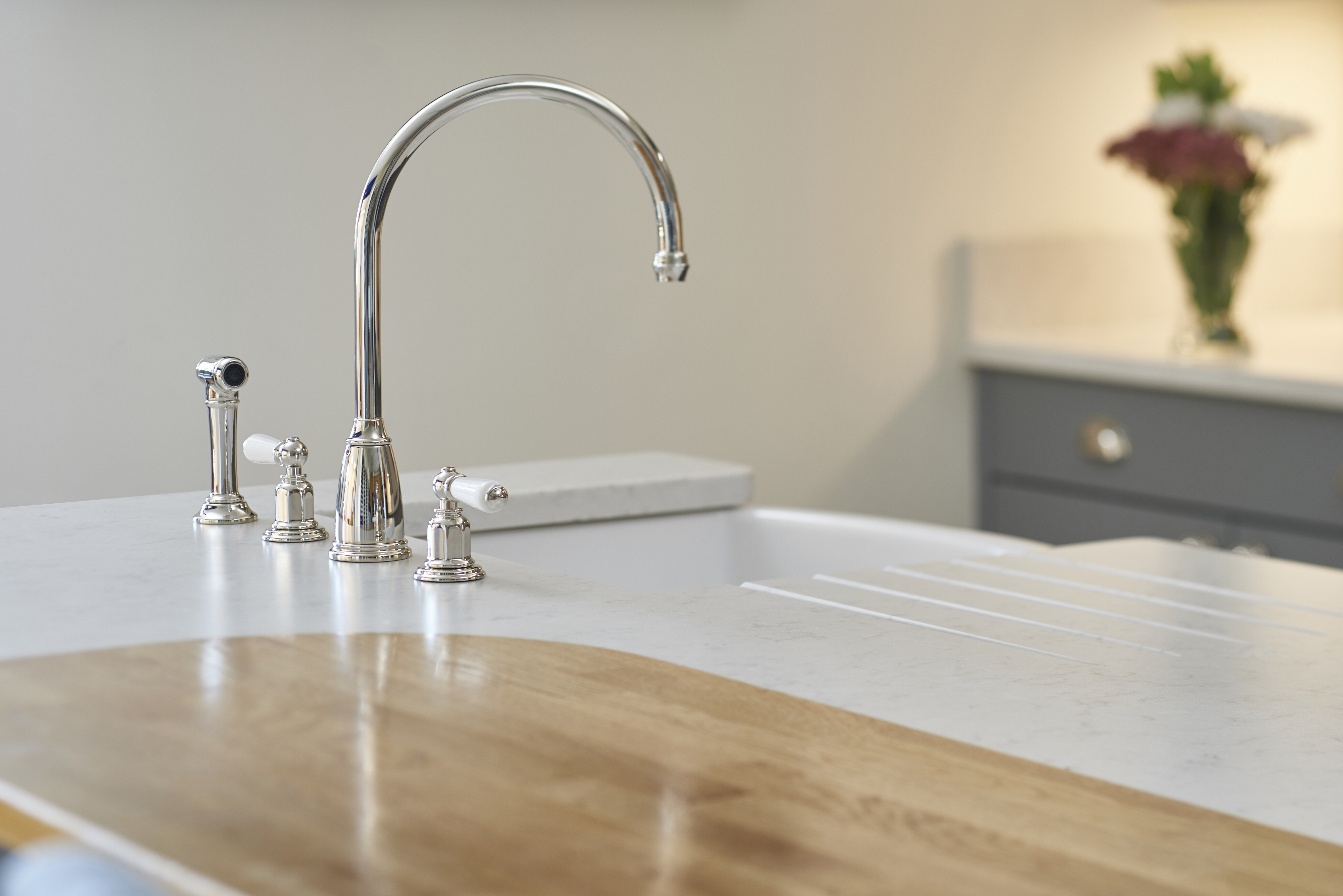 Klasický model Perrin & Rowe, naše široká baterie Phoenician, je stylovou volbou pro každou tradiční kuchyň. Design se vyznačuje pákovými rukojeťmi s krásnými porcelánovými vložkami a stylovým bočním oplachováním pro elegantní finální vzhled. Proporce této baterie vypadají obzvláště působivě v kombinaci s velkým dřezem.