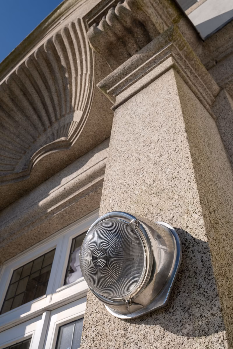 Svítidlo je vyrobeno z masivní mosazi s hliníkovým pokovením, což mu dodává robustnost, dlouhou životnost a elegantní technický charakter. Díky pevnému tělu a krytí IP65 je svítidlo Kingly ideální volbou pro venkovní použití, ale skvěle se uplatní také v koupelnách a dalších vlhkých prostorách.