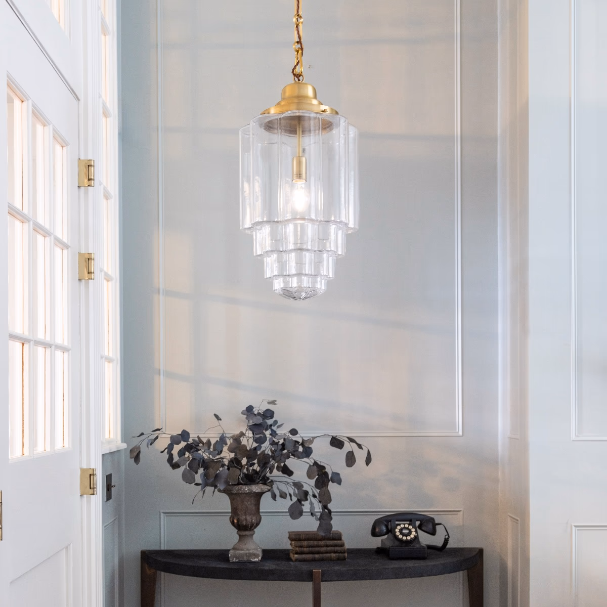 Glasshouse Pendant – závěsné svítidlo z masivní mosazi a kvalitního skla ve variantě čiré . Nadčasový design inspirovaný 20. stoletím v provedení brass.