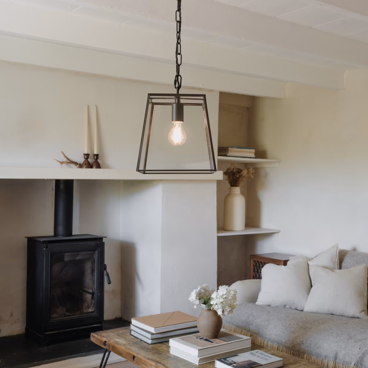 Díky působivému propojení industriálního stylu a moderního designu působí závěsné svítidlo Geo Trapeze jako výrazný, a přitom kultivovaný prvek v jakémkoli interiéru. Čiré sklo zasazené do kovové konstrukce ve tvaru lichoběžníku nechává vyniknout samotnou žárovku a dokonale ladí s dekorativními LED žárovkami Edison ve vintage stylu.