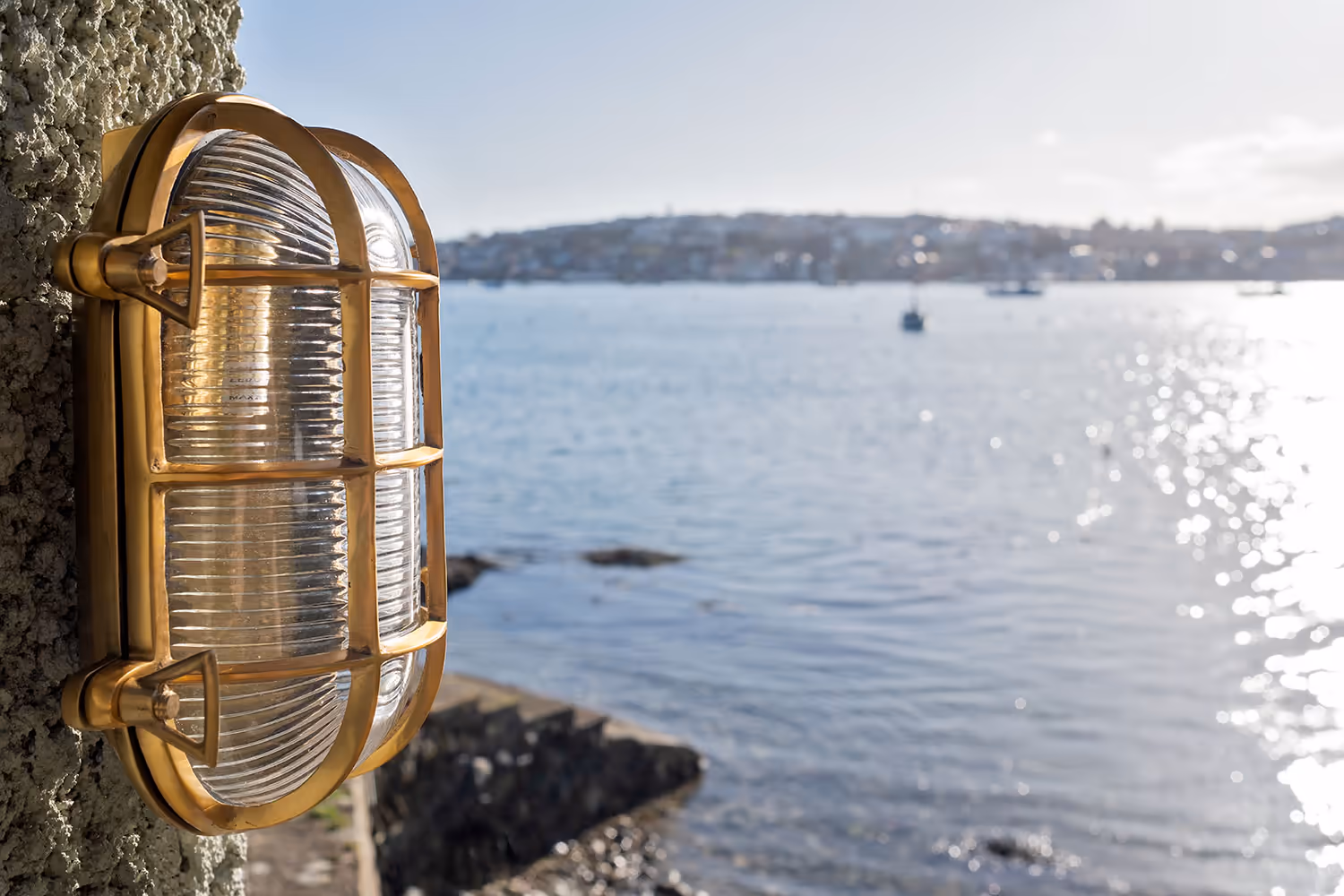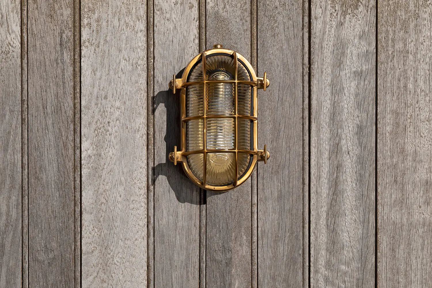 Flaxman je robustní a pevné, a přesto elegantní venkovní nástěnné bulkhead svítidlo v námořnickém stylu. Masivní mosazný plášť obklopuje leptané sklo, které chrání žárovku a zároveň nechává krásně vyniknout její světelný efekt. Výsledkem je vyvážené spojení funkčnosti, odolnosti a estetické hodnoty.