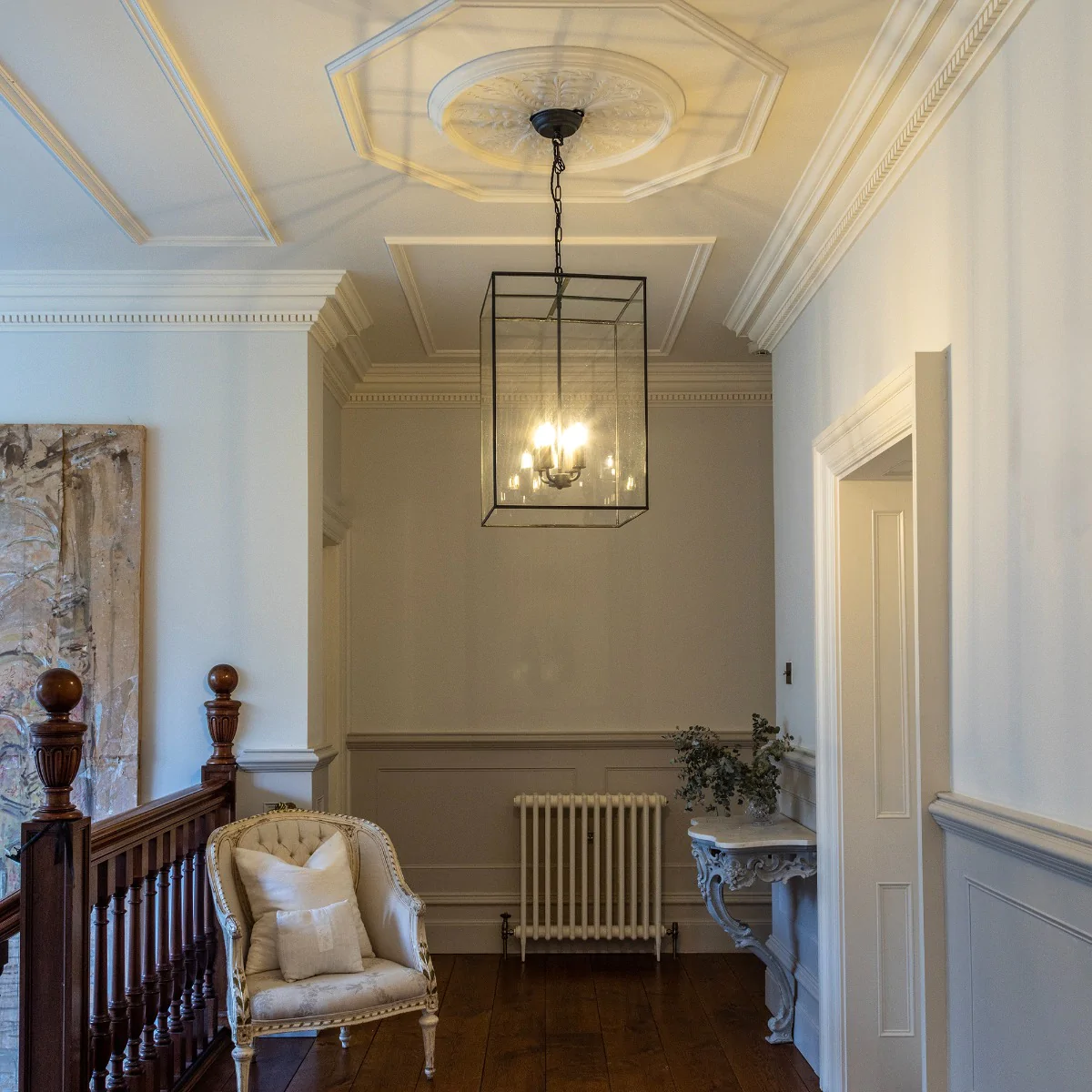 Závěsné svítidlo London Lantern nese své jméno po okouzlujících georgiánských měšťanských domech Londýna a čerpá inspiraci z jejich vytříbené elegance a nadčasové krásy. V každém detailu se odráží pocta klasickému britskému designu, který spojuje historii, noblesu a moderní minimalismus.