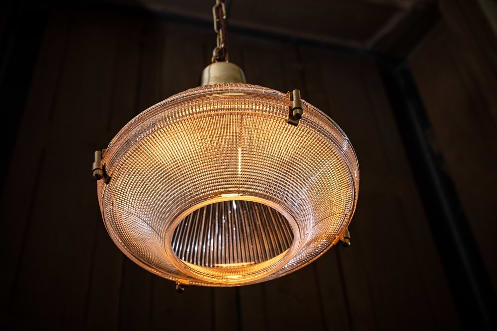 Hollen – závěsné svítidlo inspirované průmyslovým designem Brimmed Dome™ Holophane. Broušené prizmatické sklo zajišťuje rovnoměrné světlo s nádechem nadčasové elegance.